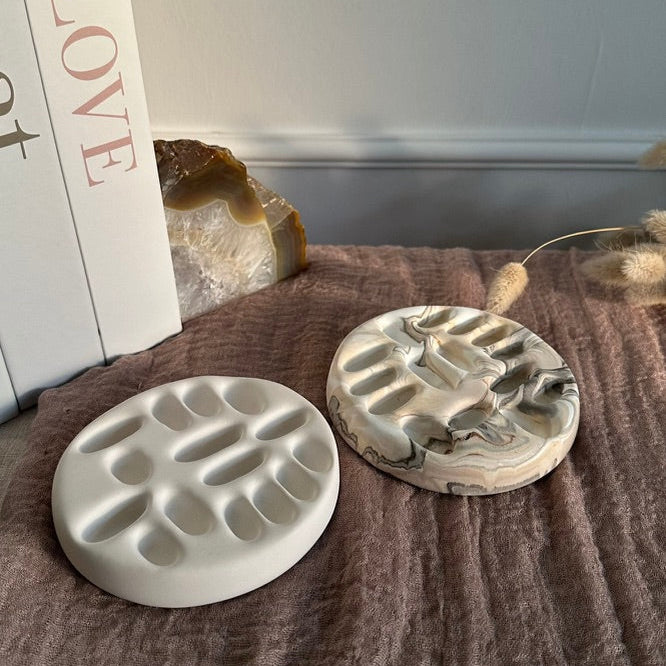 Geborgen, geordnet und immer griffbereit – die Ringschale „Heimathafen“ ist der sichere Ort für deine liebsten Schmuckstücke. Die sanften Vertiefungen geben Ringen und kleinen Kostbarkeiten ihren festen Platz und machen die Schale zu einem harmonischen Detail in deinem Zuhause.